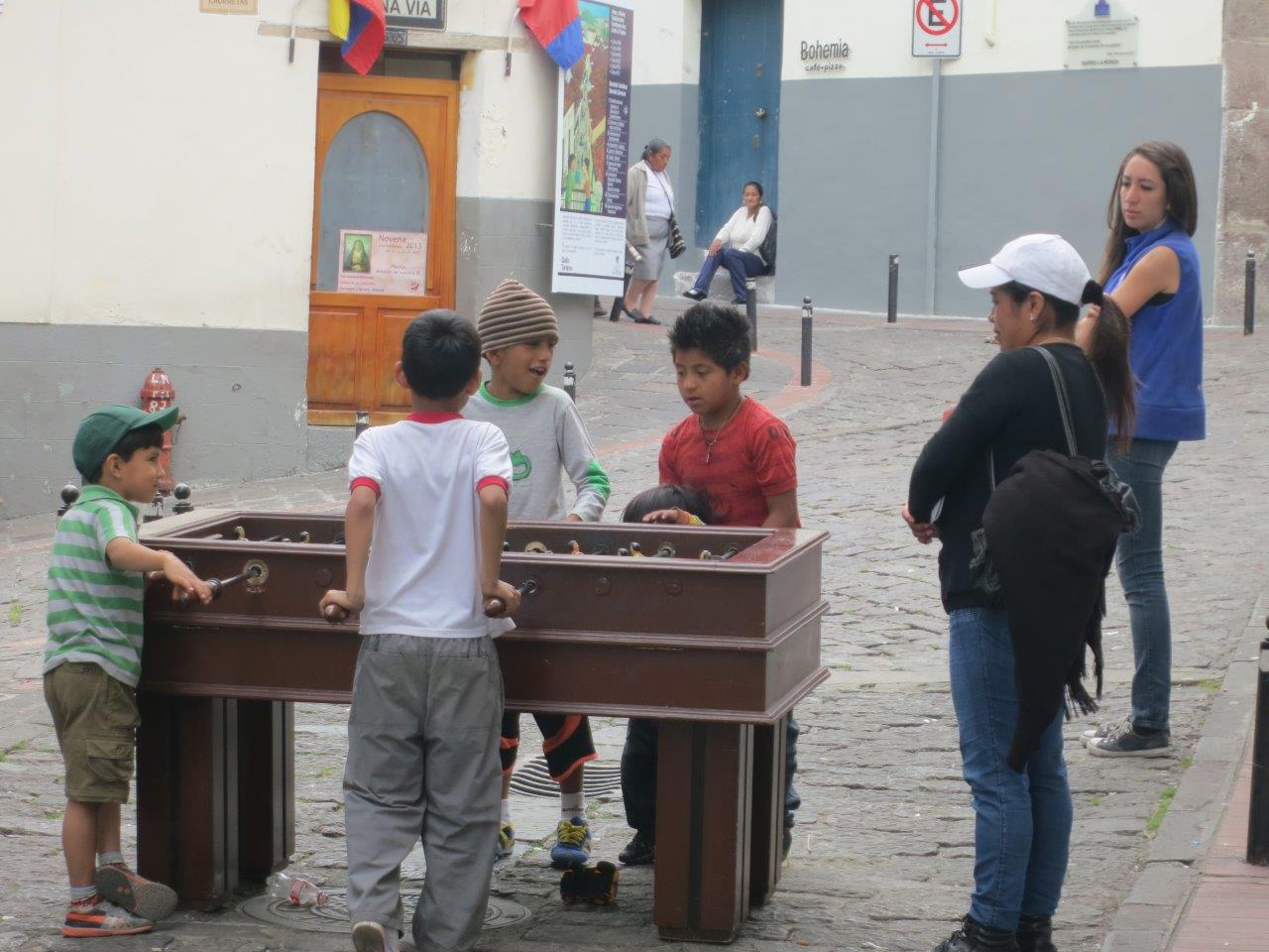 ![]() ![]() ![]() ![]() Fotos oben (v.o.n.u.): 01 "Um besser zu leben Brot, Dach, Arbeit" Wortspiel "Evo-lution" 02 Götter, La Pacha Mama, Kultur und katholische Kirche 03 „Kita“ 04 Bank belegt |