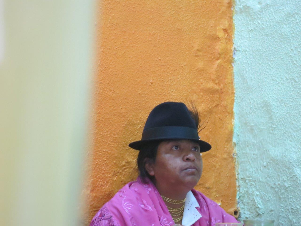 Quito (Ecuador) Zum Zeitpunkt der triumphalen Wiederwahl des Präsidenten Rafael Correa, Initiator der „Bürgerrevolution“ mit kritischen Positionen zur USA. Sozial-ökonomisch ein erfolgreiches Entwicklungsprogramm neokeynsianischen Musters (aktive Rolle des Staates in der Landes-Entwicklung und bei Sozialstandards). Nach seiner zweiten Amtszeit löste ihn mit seiner Unterstützung der Vizepräsident Lenin Moreno ab, der sein Wahlversprechen nicht hielt, die „Bürgerrevolution“ kippte und sich den USA andiente. Politische Sekretärin der Bewegung der „Bürgerrevolution" Nachdenklich |